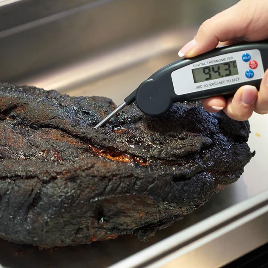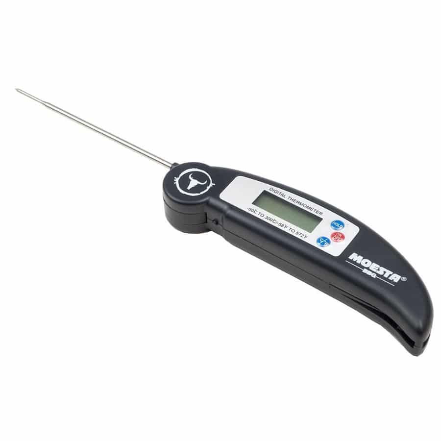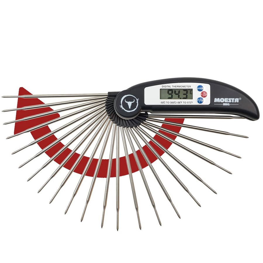 Der Thermometer No.1 – Das BBQ-Grillthermometer ist das Must-Have für alle Griller! Prüfe mit dem Einstech-Thermometer in Sekundenschnelle ob die gewünschte Kerntemperatur erreicht ist. Einfach aufklappen, einstechen und nach kurzer Zeit auf dem LCD-Display die Kerntemperatur ablesen. Das energiesparende Thermometer schaltet sich automatisch bei Nichtbenutzung ab. Betrieben mit einer AAA-Batterie. Waschanleitung: Vor dem Gebrauch den Fühler jeweils mit warmem Wasser und Seife waschen.